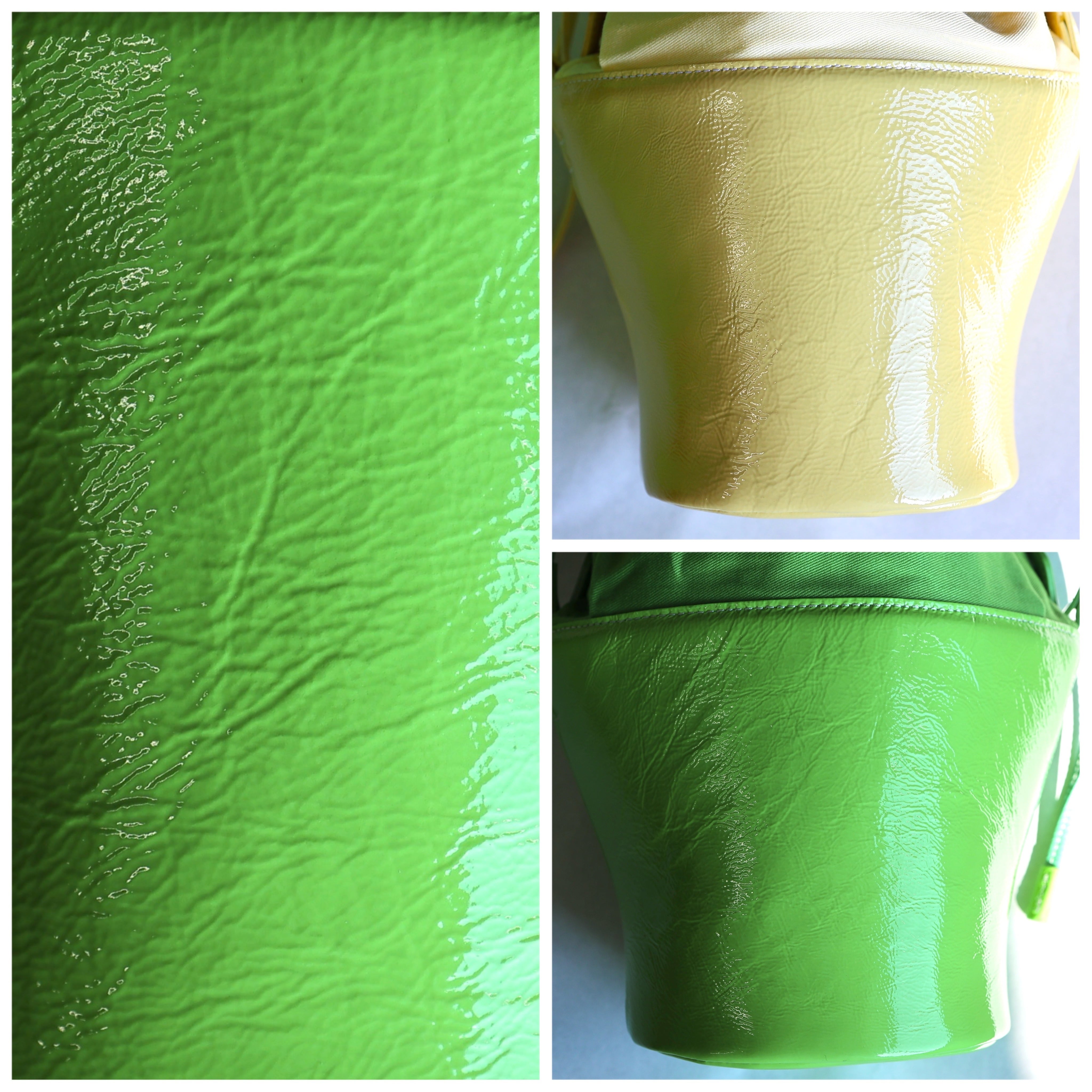 ※巾着部分の口紐は、巾着の開閉をしやすくするためボディ、ハンドル、ショルダーに使用しているパテントレザーとは異なる光沢のないシュリンクレザーを使用しております。(※Patentのカラー以外のPottery Bagに使用しているレザーとなります。)