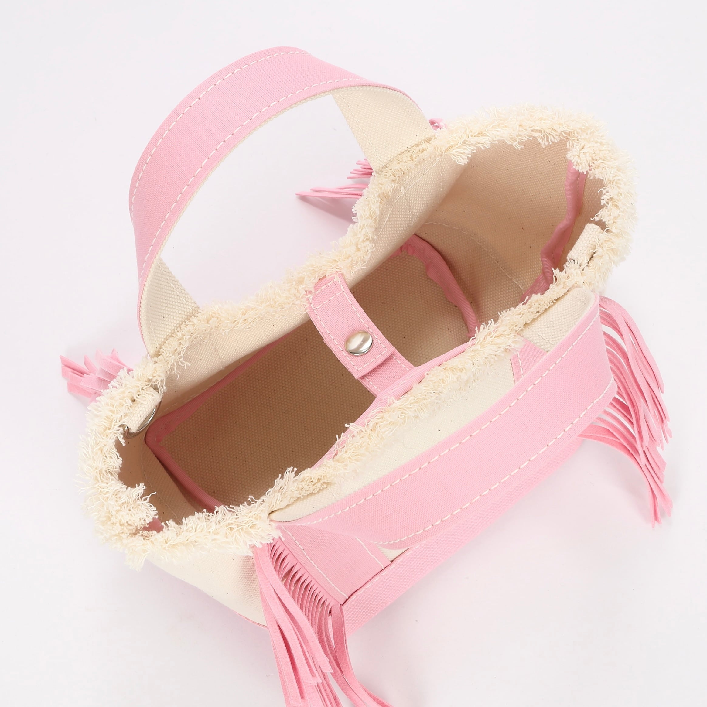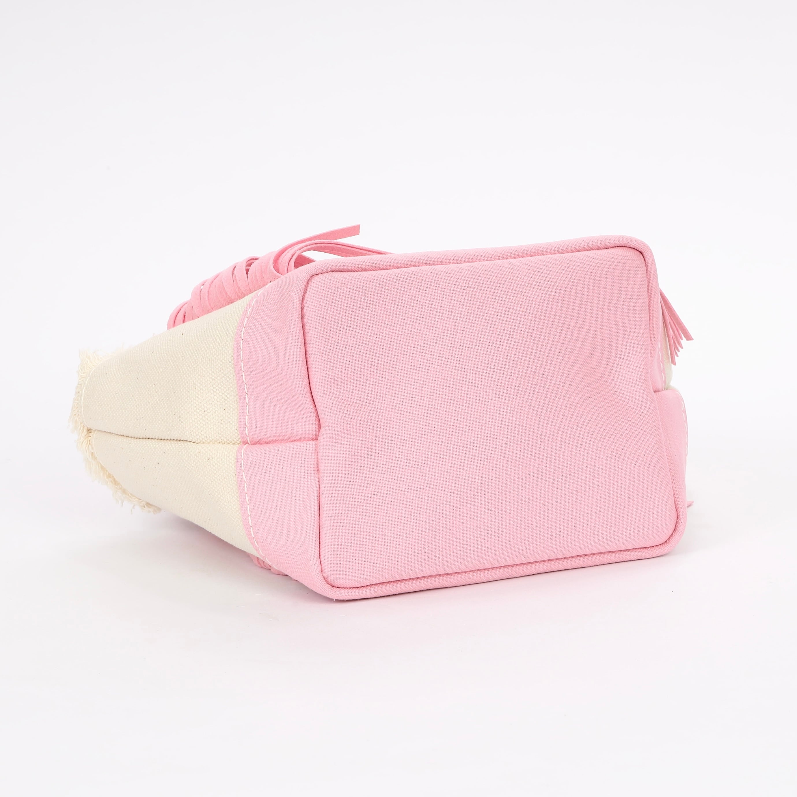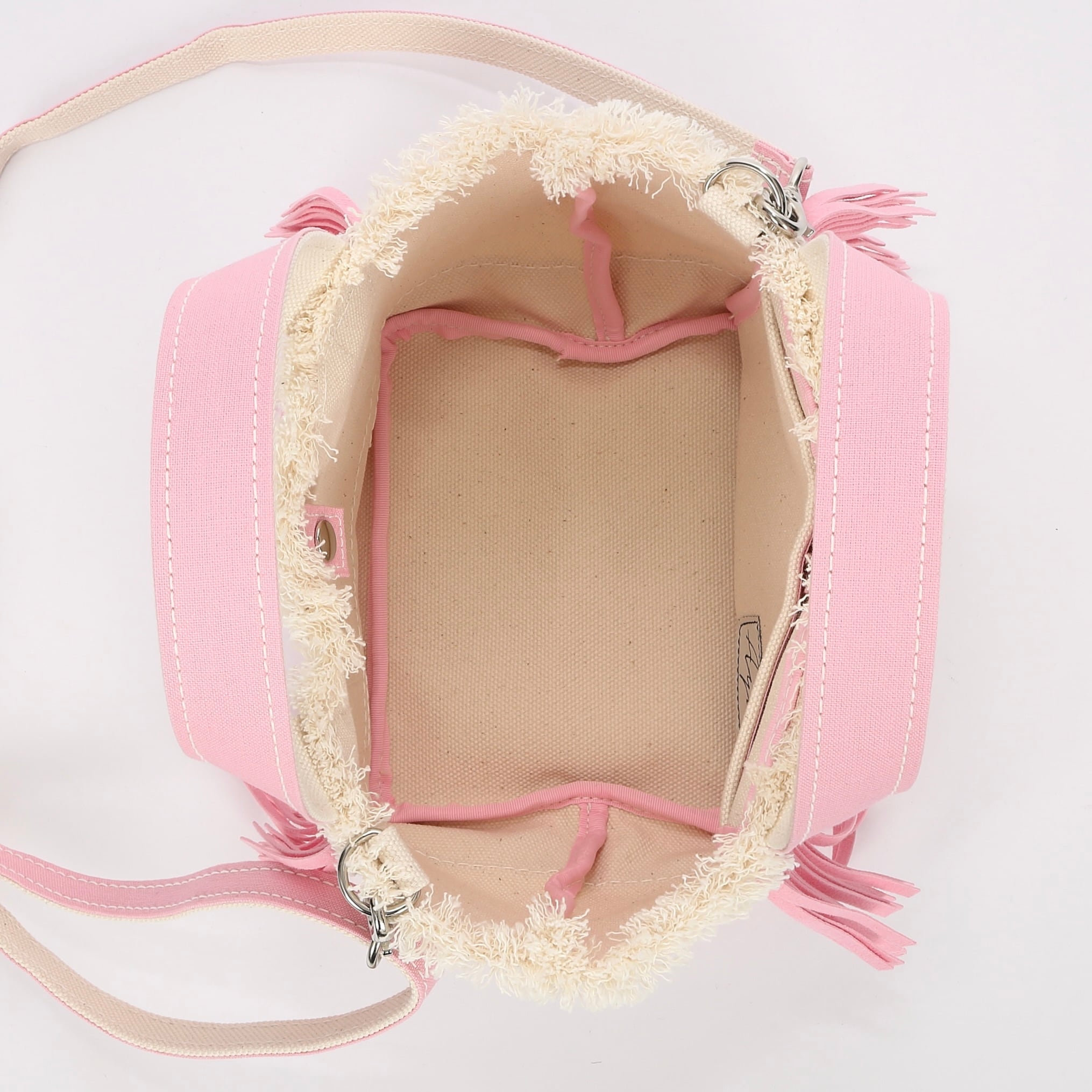 フリンジの下部分に表面から見えております上部の縫製糸は、ほつれ留めとしてミシン縫いで仕上げておりますので、万が一糸が出た場合は、カットしていただきますとフリンジの切りっぱなし部分にボリュームが増します。