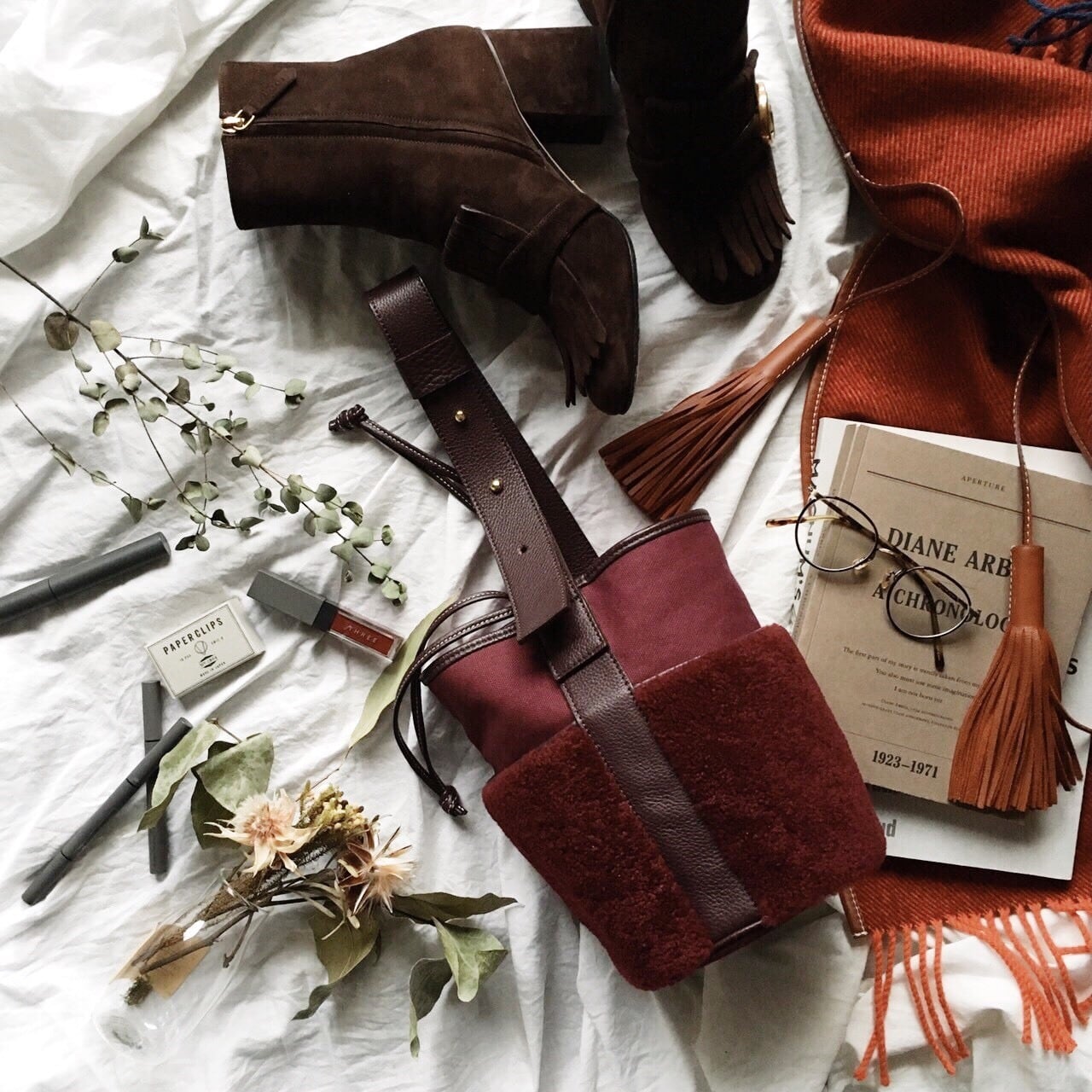 ムートン、レザー、帆布の異素材を組み合わせ様々なシーンにぴったりと寄り添ってくれる、"Mouton Bag"